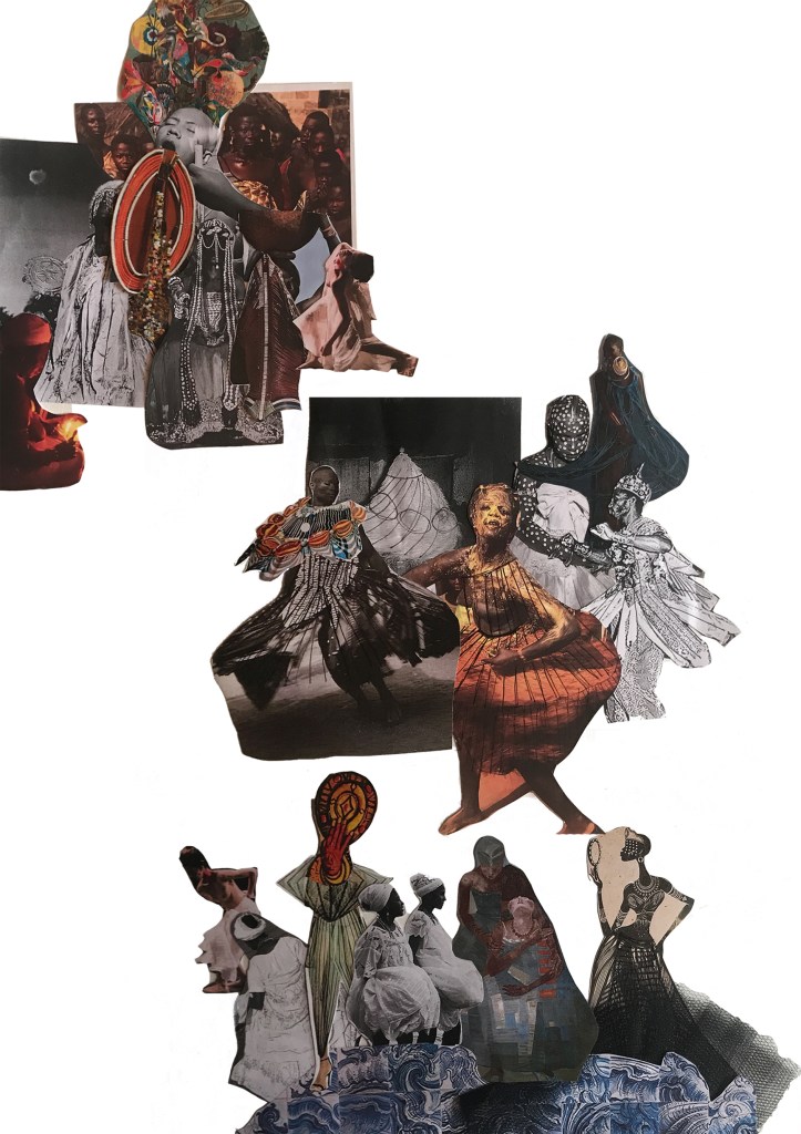 Research Collage, Images over paper, pleated tulle, 59,4x45cm, 2018.